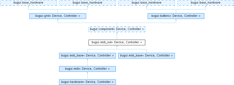 bugui::component< Device, Controller > bugui::grid< Device, Controller > bugui::buttons< Device, Controller > bugui::base_hardware bugui::base_hardware bugui::base_hardware bugui::base_hardware bugui::midi_base< Device, Controller > bugui::midi_base< Device, Controller > bugui::midi< Device, Controller > bugui::hardware< Device, Controller >